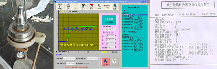 生物質(zhì)顆粒熱值測定儀實(shí)驗結果 石油發(fā)熱量測定儀操作方法:工作原理: 將試樣裝入易燃封閉的膠囊中,放入氧彈坩堝中,在3.0MPa左右壓力的氧氣中燃燒,以測定試樣燃燒中所產(chǎn)生的熱值(彈熱值),作為總熱值和凈熱值的測定基礎。 實(shí)驗步驟: 將試樣稱(chēng)重后放入坩堝,系好點(diǎn)火絲和棉線(xiàn),往氧彈中加入10mL蒸餾水,旋緊氧彈蓋,然后用充氧儀往氧彈中緩緩充入氧氣,將充滿(mǎn)氧氣的氧彈放入量熱儀內筒,點(diǎn)擊軟件:輸入試樣編號和試樣質(zhì)量后即可進(jìn)入試驗過(guò)程,自動(dòng)注水、攪拌、測量、排水等,試驗結束后自動(dòng)計算出彈熱值,并存儲或打印機打印數據結果。 彈熱值測定精密度 重復測試兩個(gè)試樣結果間差數不應該超過(guò)每克30卡。 總熱值計算結果: